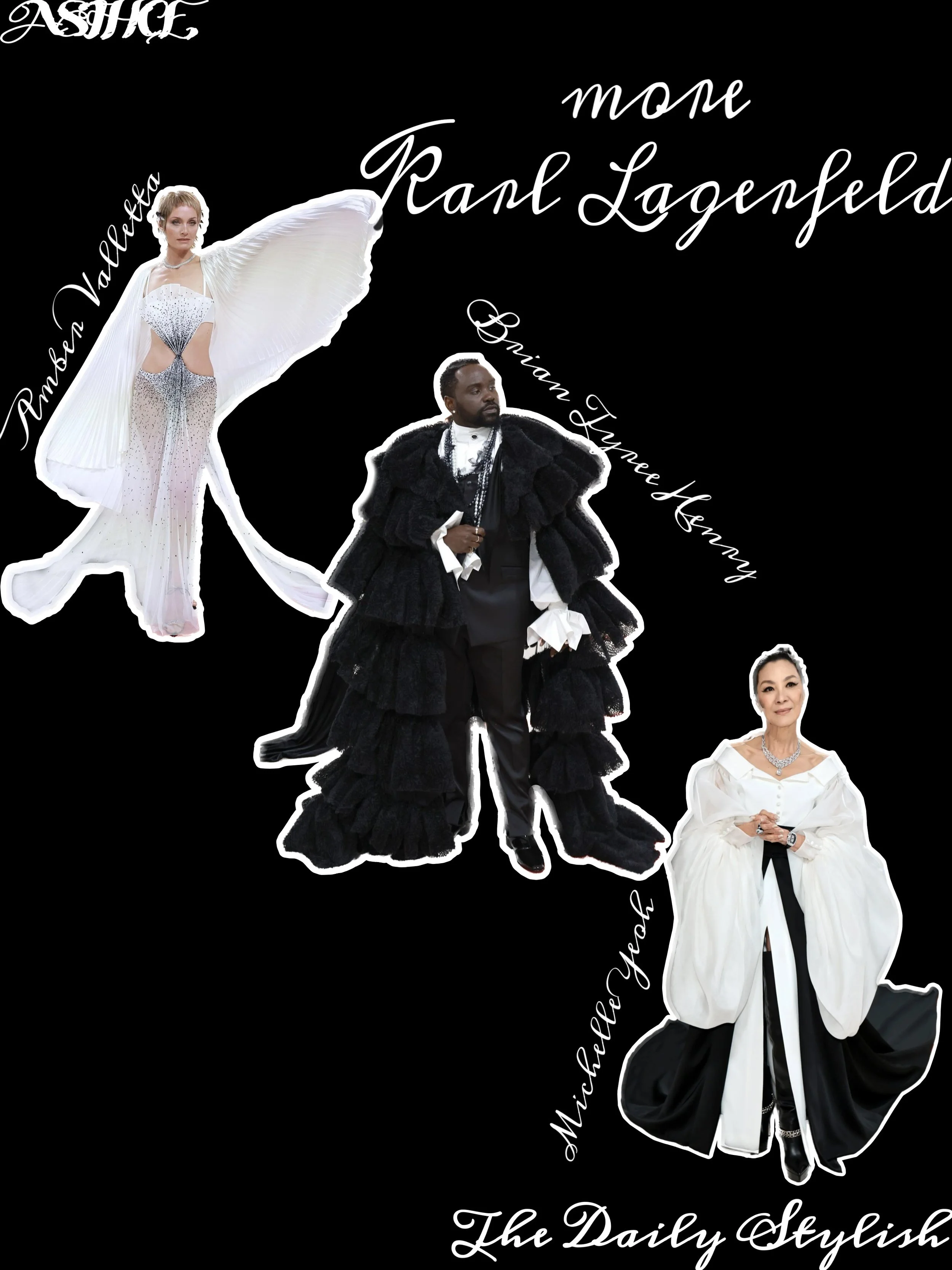 With that to look forward to I decided to curate looks by designers and fashion houses worn to the gala that I thought would have displayed some likeness to the designs of Karl Lagerfeld, including his personal style. And thanks to the designers and stylists who shared the inspirations behind the final looks worn to the gala, I definitely had a lot to choose from.