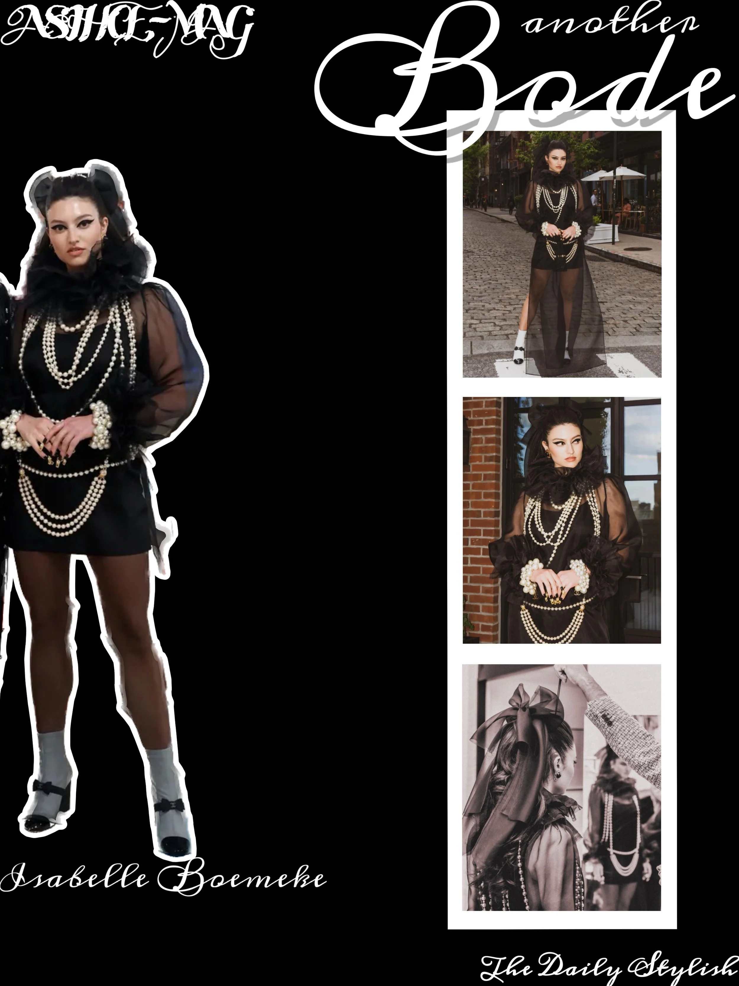 Isabelle Boemeke styled by Karla Welch Chanel pearls from Tab Vintage .