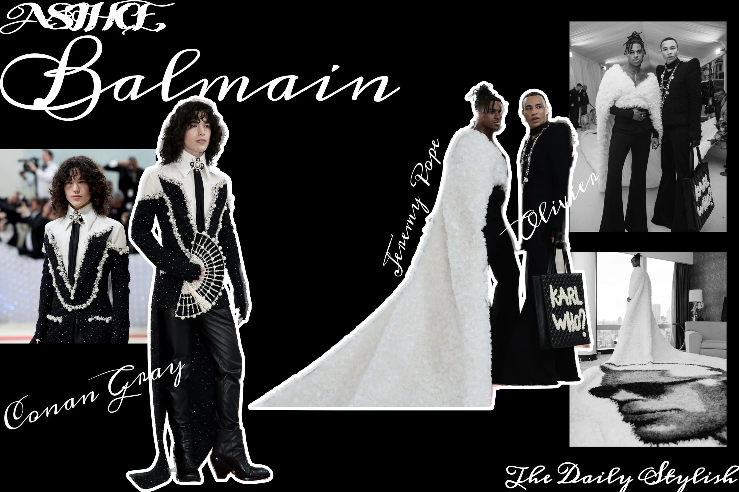 Conan Gray styled by Katie Qian , Jeremy Pope styled by Ugo Mozie & Olivier Rousteing styled by himself in his own designs.
