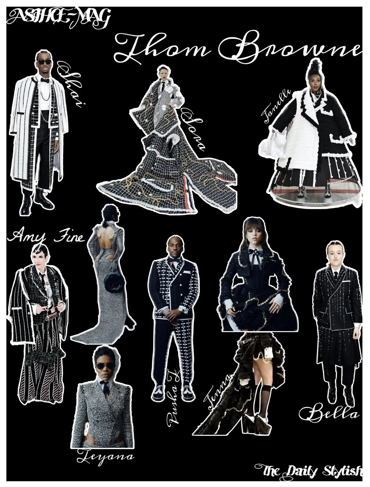 Shai Gilgeous-Alexander styled by Yashua Simmons, Sora Choi styled by the Thom Browne Team, Janelle Monae styled by Alexandra Mandelkorn , Amy Fine Collins styled by unknown [probably herself], Teyana Taylor styled by the Thom Browne Team, Pusha T styled by Corey T. Stokes, Jenna Ortega styled by Enrique Melendez & Bella Ramsey styled by Fabio Immediato.