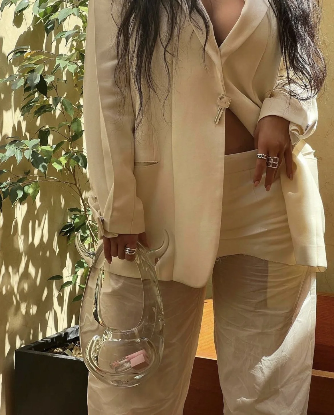 First I have this - groundbreaking - as I have been describing it lately, pair of pants worn by Kylie Jenner for the Kardashians press day. The blazer and pants set is a custom made outfit designed by Isidora Durovic, a name I believe we should keep an eye out for, I mean just take a look at this whole design especially the pants. I have linked her instagram below so you can view the whole look.